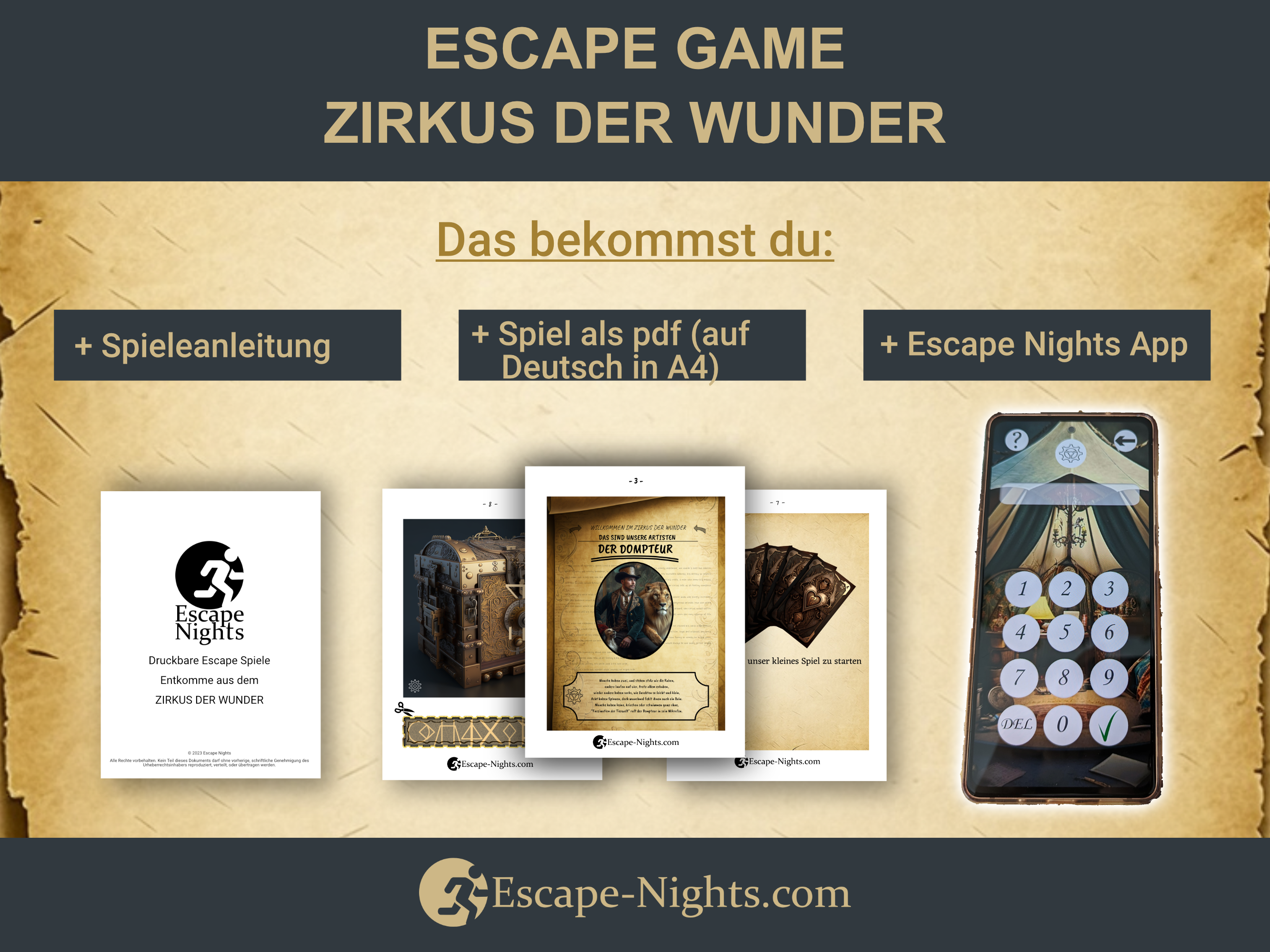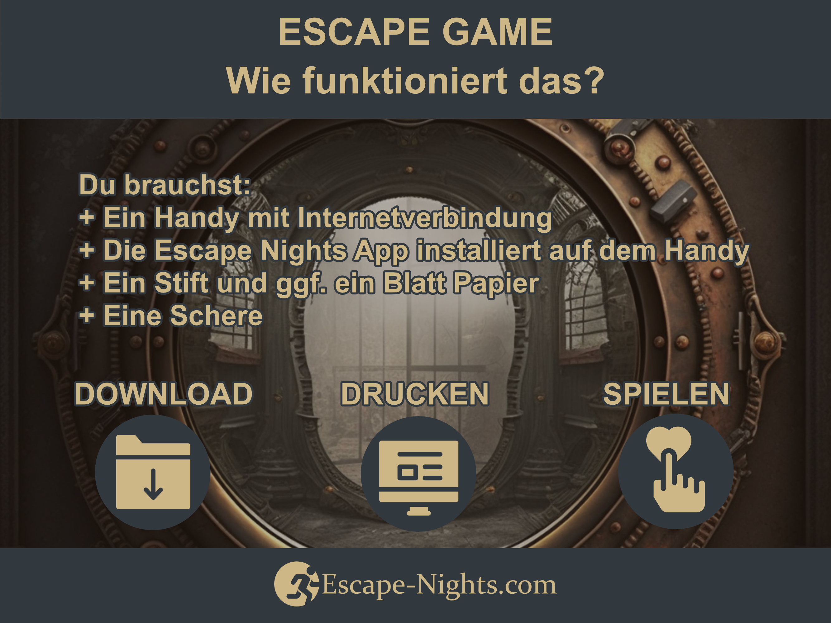 - Unsere Escape Nights App, die kostenlos im Google Play Store und App store heruntergeladen werden kann.